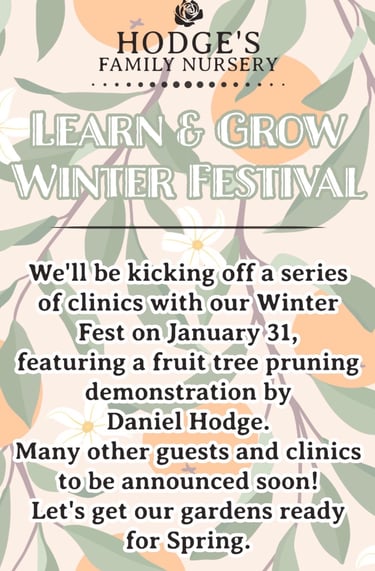 When: January 31st, 10:00 a.m.-1:00 p.m. at Hodge's Nursery, 9681 Midway, Durham, CA 95938