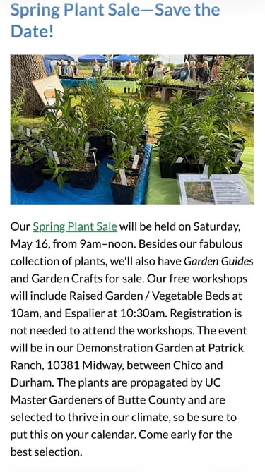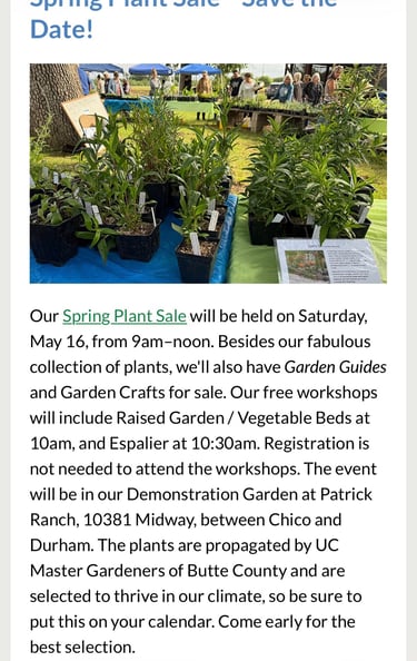 Click here to register. Many thanks to the Master Gardeners of Butte County