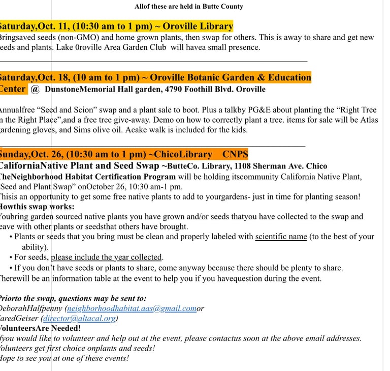 See image for a list of several seed and scion (grafting material) swaps in Butte County.