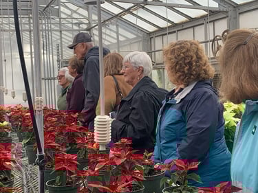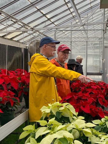 We had a terrific tour of the University Farm greenhouses for our November 2025 meeting. Our speaker was Angie Handy (in red hoodie) the Greenhouse Technician.
